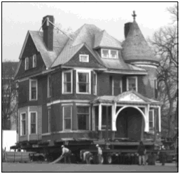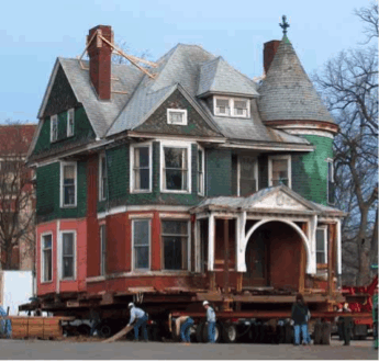motivated to move forward on the dozens of in-flight tasks. Secondly, a building is more than timber or brick and mortar—it is part of a landscape comprised of other structures, lawn, trees, plants, sidewalks, streets etc.. When a house is moved, the landscape at its old and new addresses also changes. The house will never be as it was on Washington