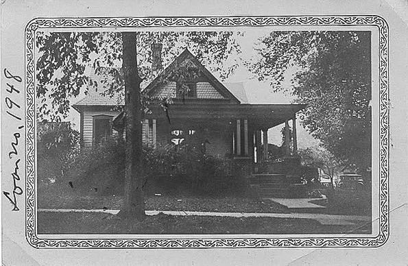 The house changed hands a couple of times until it was purchased September 21, 1908, by Fred and Augusta Schmidt for $3000. This would have been right at the same time the school next door was torn down and the three brick stucco, four-square houses that stand today were being built. The Schmidt’s were German immigrants and long-term Bloomington residents. They were in their sixties by the time they purchased the home and lived with their daughter, Clara, and her husband, Peter Meyers, after they were married April 13, 1909. Peter and Clara made this house their home for many decades. They hosted parties advertised in the newspaper and even hosted their daughter’s wedding (Dorothy Meyers to WW2 Vet Sgt. Thomas Dunaway). The house stayed in their family until after Clara passed in 1969. The old photos of the house on this page come from Dorothy and Tom’s children who have fond memories of spending summers at their grandparents’ home.