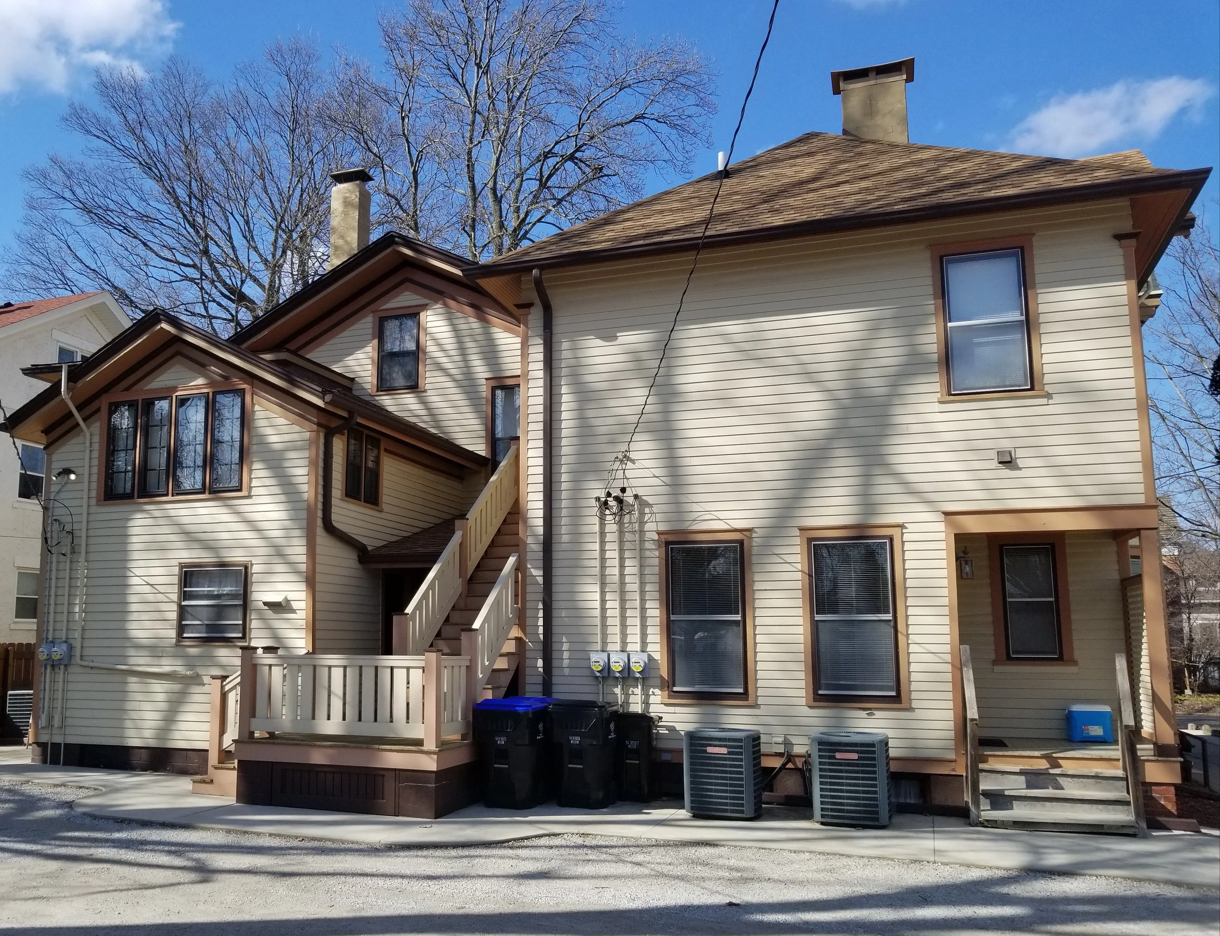Dr. P.G. Young was born in Virginia in 1810 and came to Bloomington in 1848 accompanied by his wife and six children. Young was not a medical doctor but rather was a diagnosing pharmacist and advertised his business widely. By 1850 he was also serving a s a preacher and maintained both professions up to the Civil War. The house had a variety of occupants up to 1891 when Mr. and Mrs. Charles Perrigo obtained the structure. Upon the death of Mr. Perrigo, Mrs. Perrigo had the building expanded in 1904, undoubtedly to provide her with secure income in a period without government social programs.