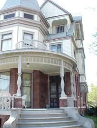 This Queen Anne style brick and frame home was designed by architect George Miller and built in 1886 for George H. Cox. Cox was the Secretary-Treasurer and General Manager of the Hungarian Roller Mill Company. He was a board member of the Corn Belt Bank and a leader of the First Presbyterian Church.
